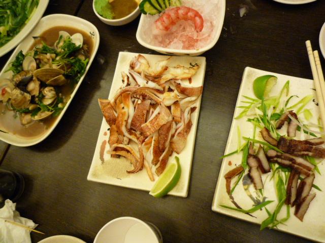 蝦、筍、黒豆などを注文し、ビールを飲みながら食事を楽しみました。