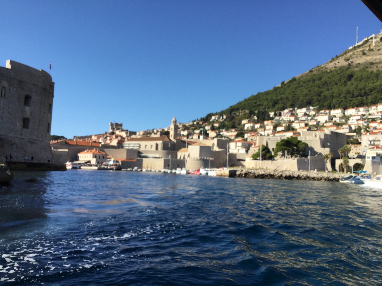 クロアチアの世界遺産、ドゥブロヴニクの旧市街港から見て右の方に
