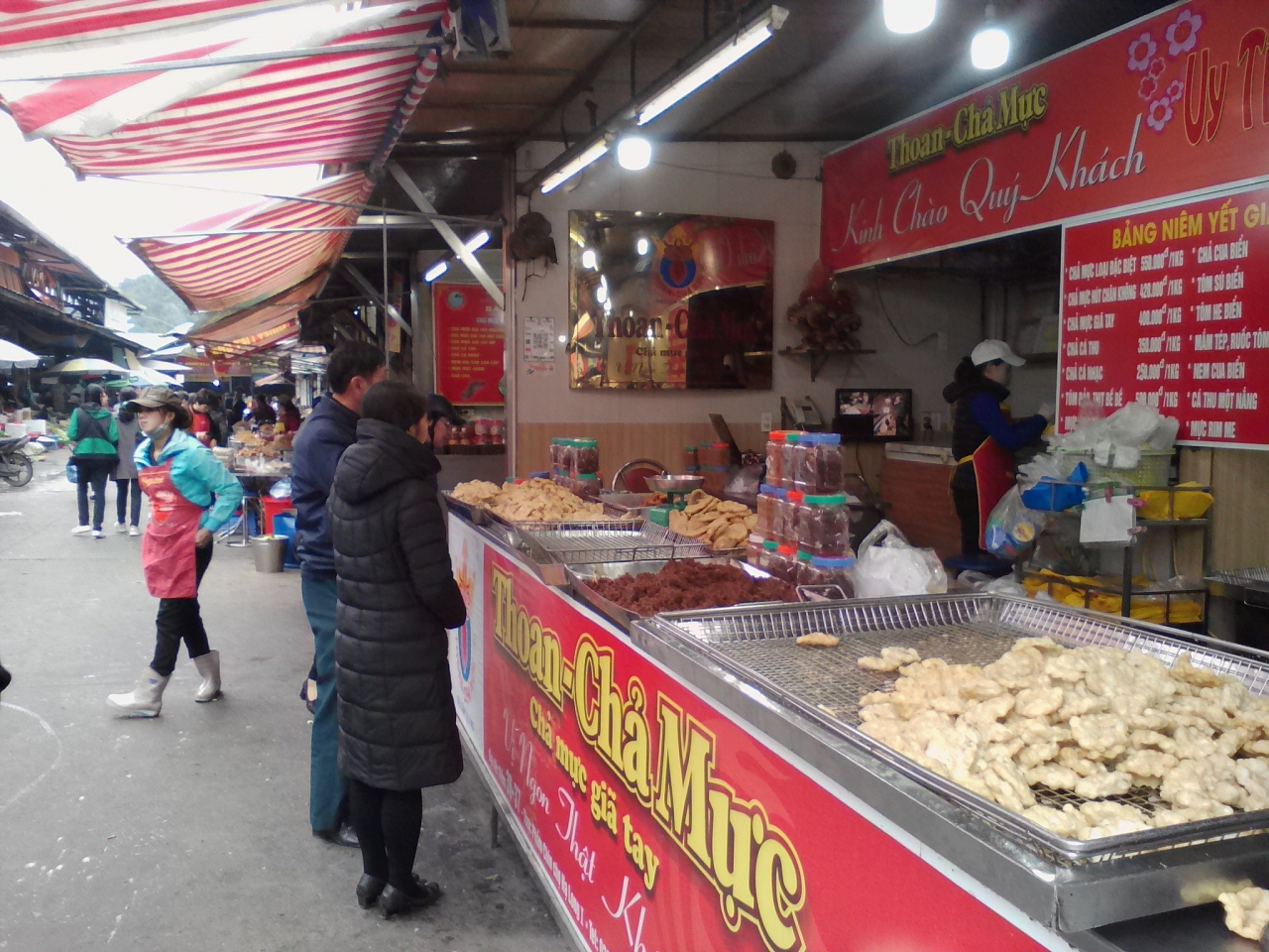 ホンガイにある巨大市場です。中はガラ〜ンとしていてで静か〜。1階は電化製品やら雑貨、おもちゃ、お菓子、工具類など箸にも棒にもかからない物ばかり。2階は衣料品中心です。建物内はぱっとしません。ハロン市場は周辺の“場外”がおもしろいです。特に裏手、ハロン名物チャームック(Cha Muc イカのすり身揚げ)を売る店が軒を並べています。1kg40万ドン(≒2000円)ほどとベトナムの物価からしたらなかなか高価なものですが味は抜群にうまいです。ビールとの相性200%です。食べずに帰ると損します(ハロン市場以外でも食べられますが…)。ただ観光客がやって来る市場なのでローカルな麺屋や果物などでも物価は高めです。
