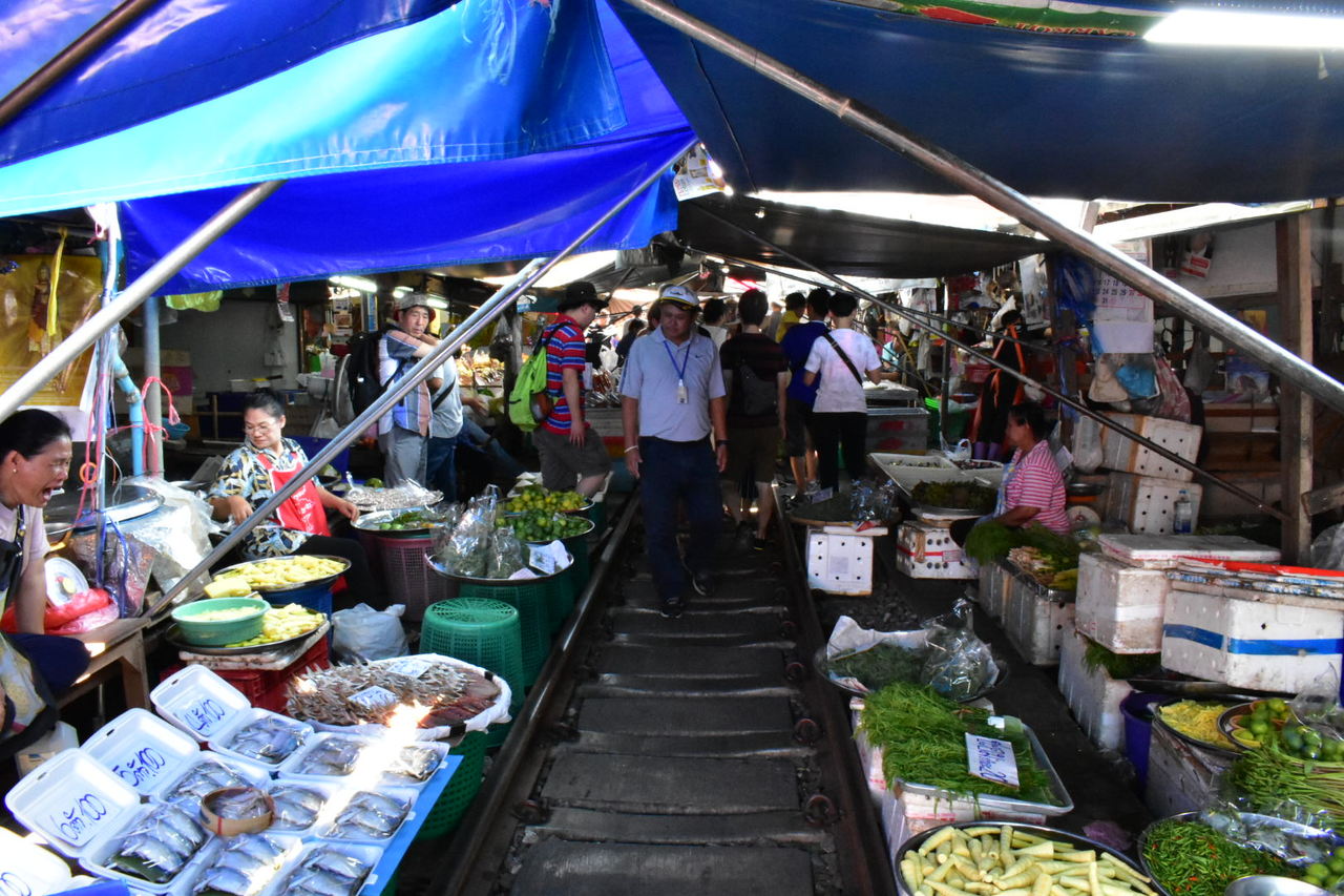 メークロン市場は大変混雑するので、列車が通過する15分ぐらい前にいい場所をキープしとかないと、列車が来てから慌てて場所を探しても奥の方の見えにくい場所しか空いてないこともある。