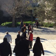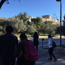 観光バスの駐車場がありアクロポリスの丘への入り口がある