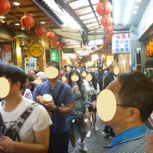 大人気観光地九分のメインストリーとで、狭い路地にはレストラン、お土産屋さんが所狭しとひしめき合っています。