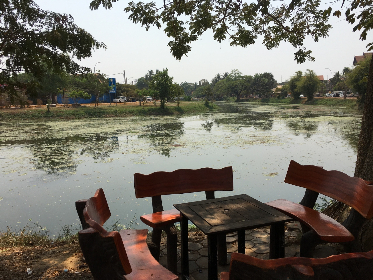 シェムリアップ川沿いでのどかな風景が見られるのは、チケットセンターから遺跡に向かう川沿いの道とナイトマーケットのさらに下の森本産のクメール伝統織物研究所のあたりですかね。
