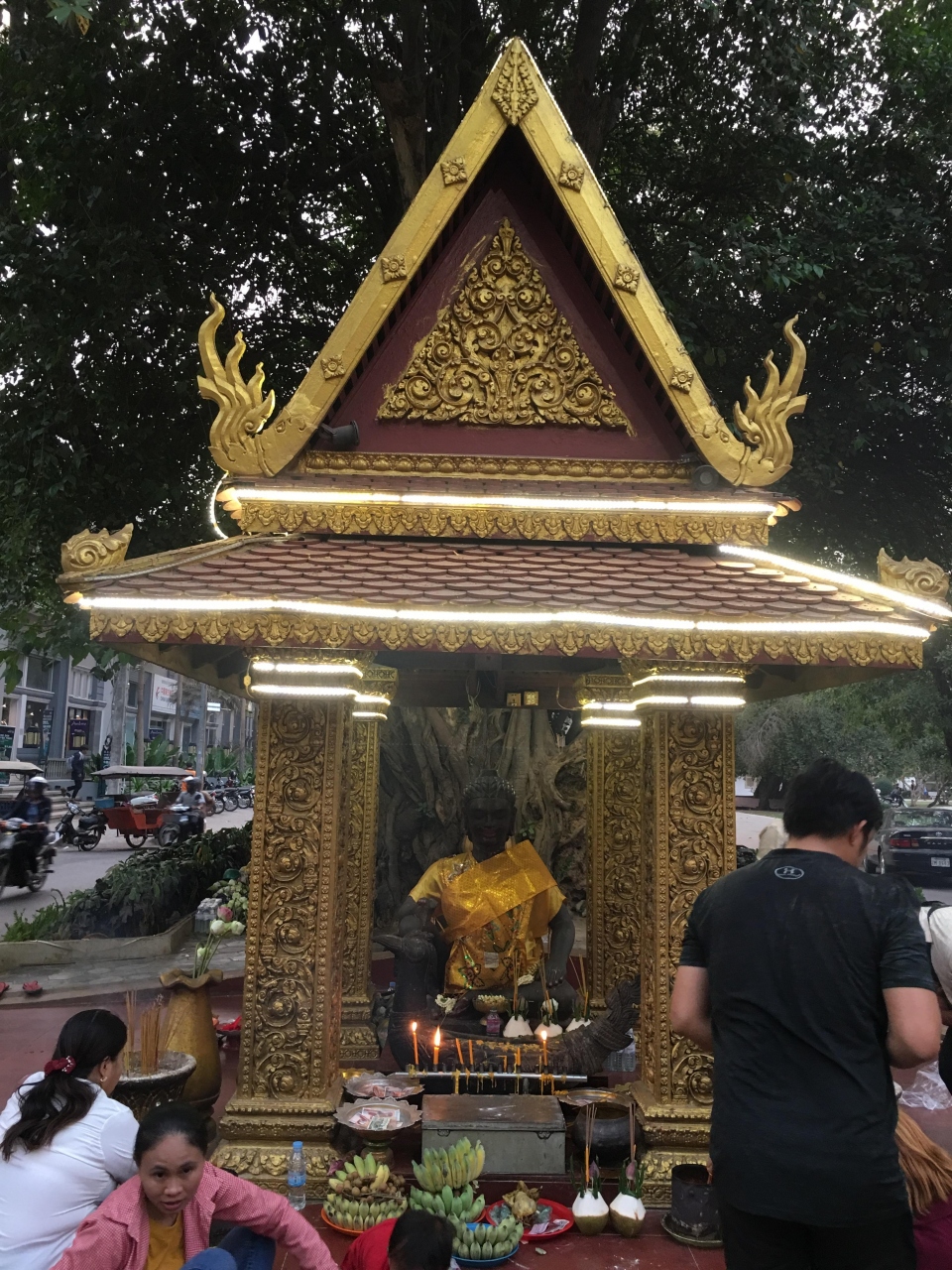 道路ぎわに立つ仏像と寺院からは線香の煙が驚くほど立ちこめます。