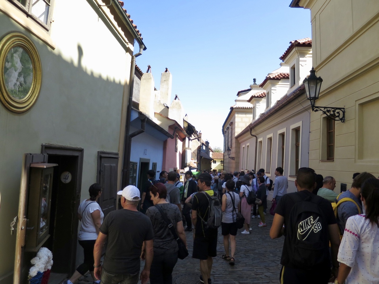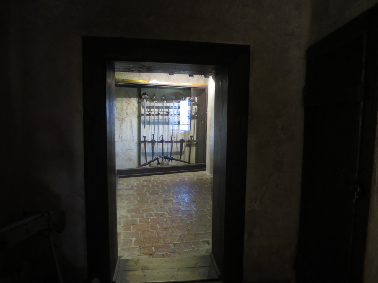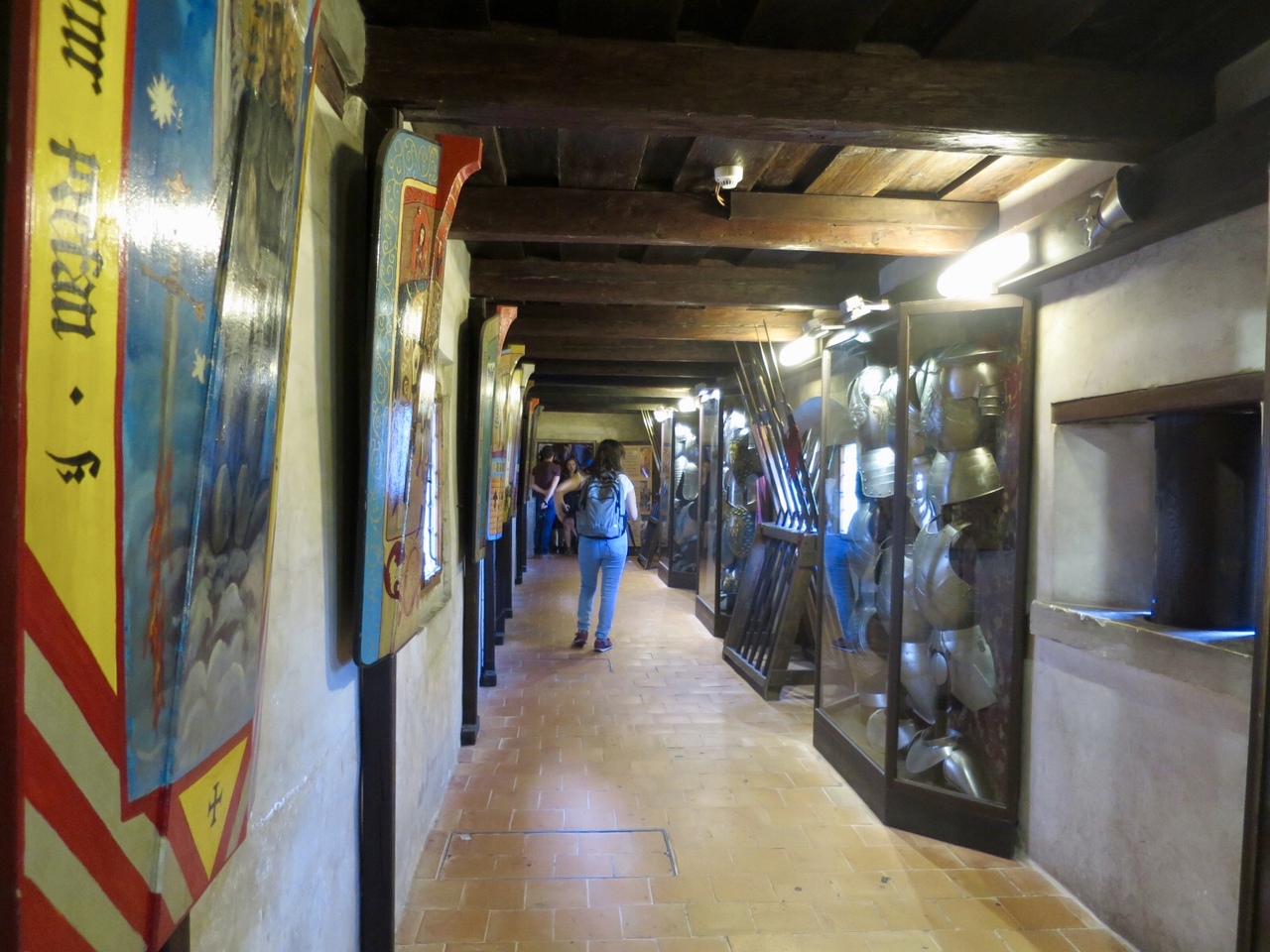 黄金小路に入ると、小さな家が並んでいますが、始めにある家の2階が一番の見所だと思います。複数の家が繋がっているのも驚きですが、廊下には中世の甲冑や武器などの展示品、奥にも武器部屋や拷問部屋などがありました。