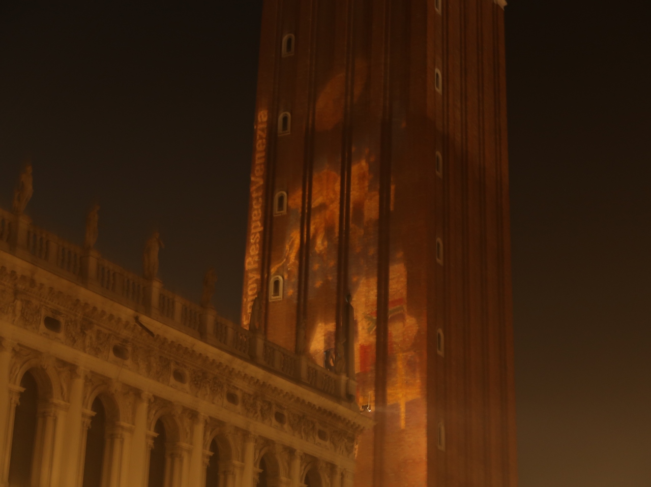 夜には、鐘楼にベネチアの獅子や旗?などが投影されていました。