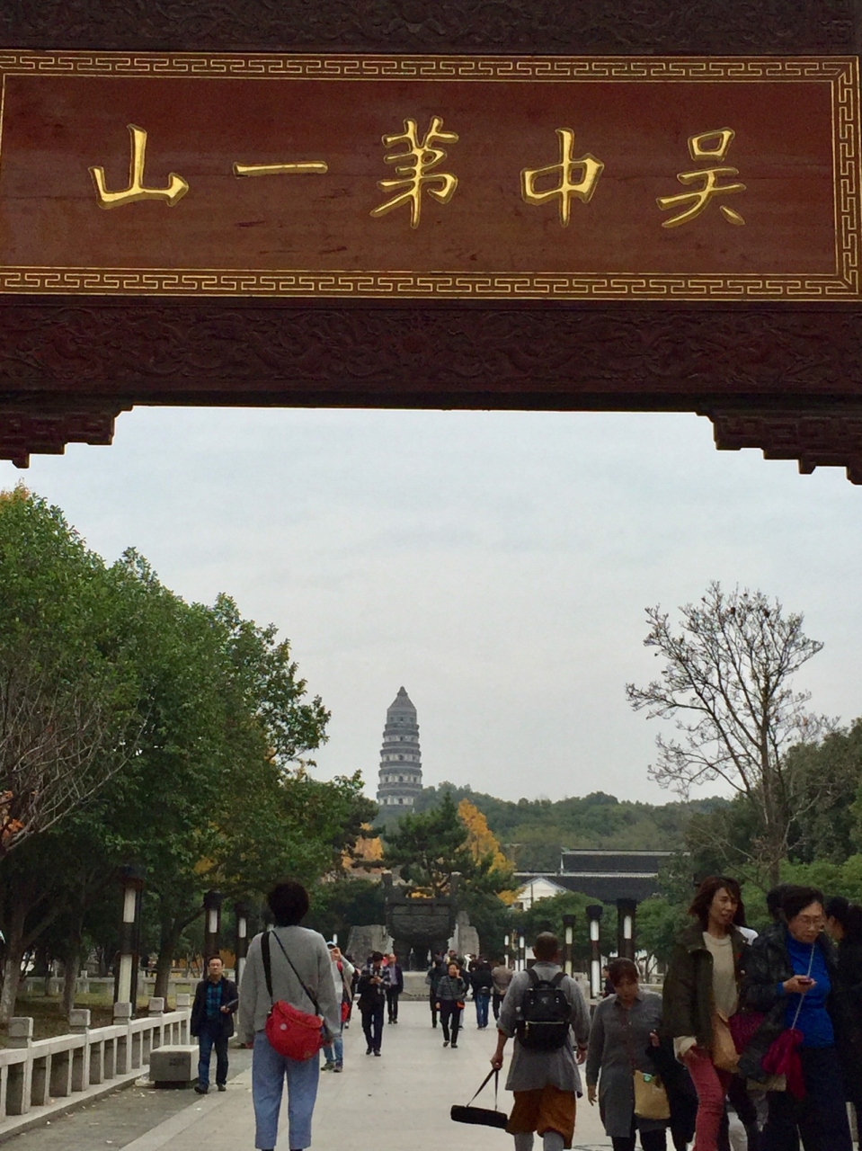 虎丘への参道の入口に建つ呉中第一山の門からみえる虎丘塔が写真スポットということで、今回はここからの観光となりました。