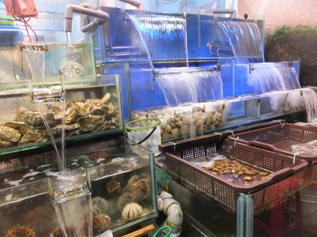 一匹2000元はする蟹や伊勢海老など新鮮な魚介類を堪能しました
