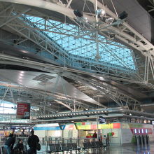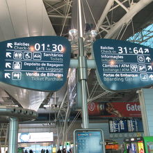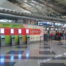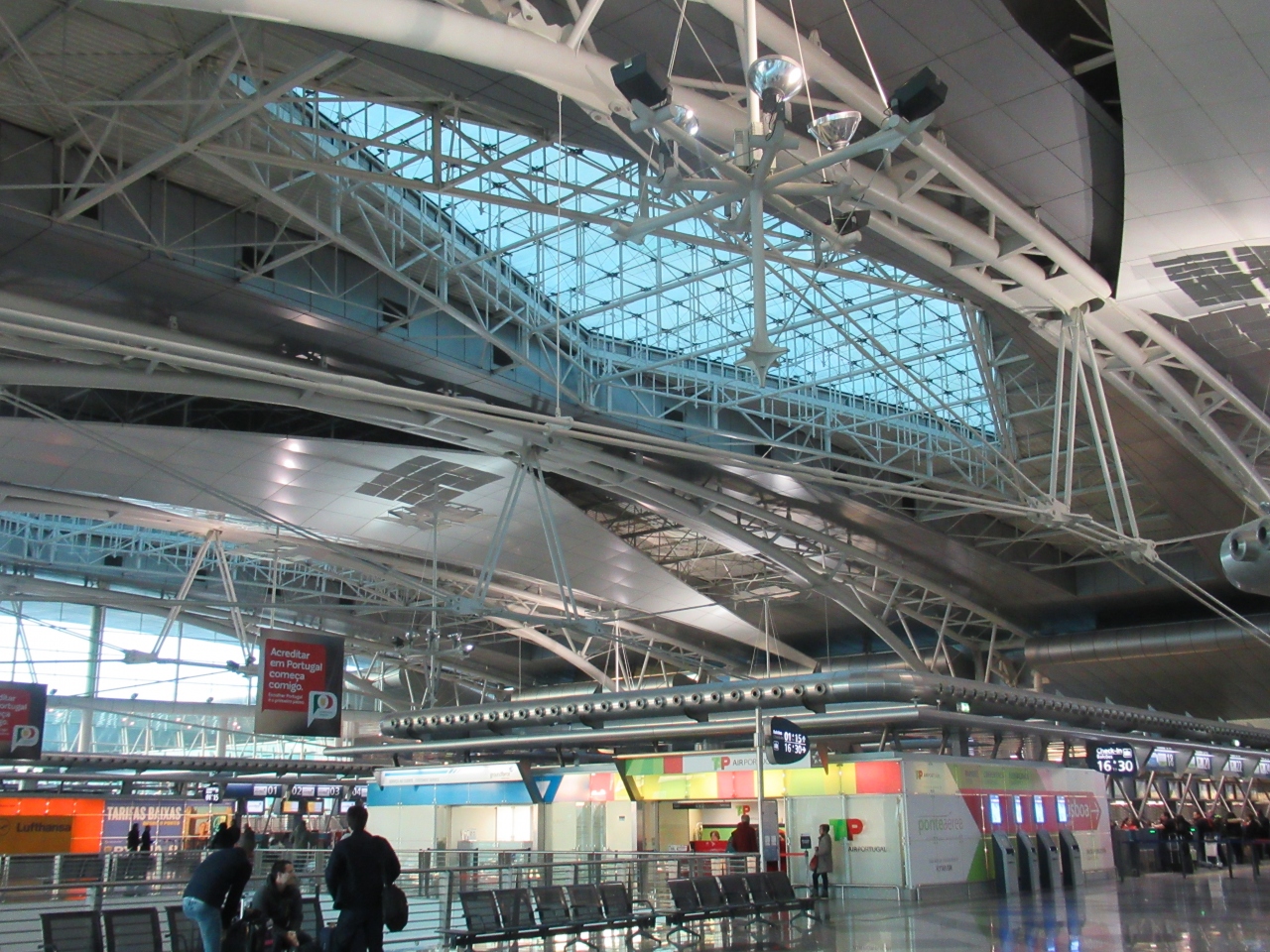 地下鉄で空港まで行きました。空港に行くにはE線を利用します。トリンダーデ駅から30分くらいで着きます。終点が空港のアエロポルト駅です。空港行きは私たちが乗った朝の時間帯は30分に1本でした。本数が少ないせいか超満員でした。超満員の車内で駅員さんが乗車券確認にまわっていました。フランシスコ・サ・カルネイロは在任中に航空機事故で亡くなったポルト出身のポルトガル首相だそうです。もっとこじんまりした空港かと思いきや天井が高くてきれいな空港でした。