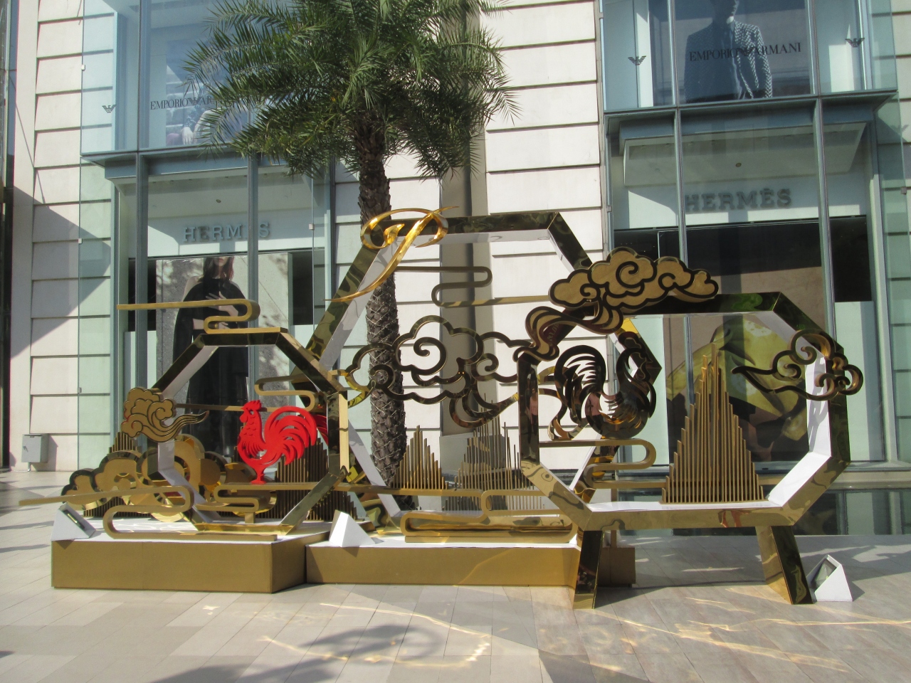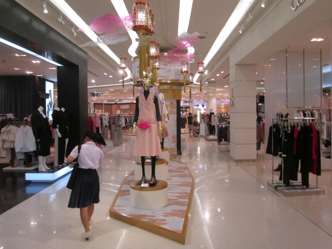 旧正月シーズンにともない店内には赤のデコレーションや酉のデザインが施されておりセールが開催されていました。プミポン国王が逝去してこの数カ月は街中全体が暗い印象を受けていましたが、通常の雰囲気に戻りつつあります。それでも、依然として店内には服喪中の幕と王様の写真が飾られていました。