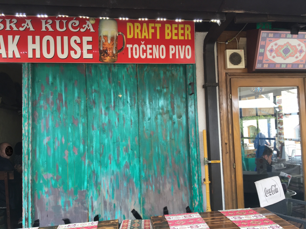 ボスニア・ヘルツエゴビナのサラエヴォのバシュチャルジャ・モスクのお隣にあるこのレストランは、昼間は扉を半分閉めて営業していました。夜になるとオープンエアーになるようです。青い扉の色がとても綺麗で写真を撮りたくなりました。