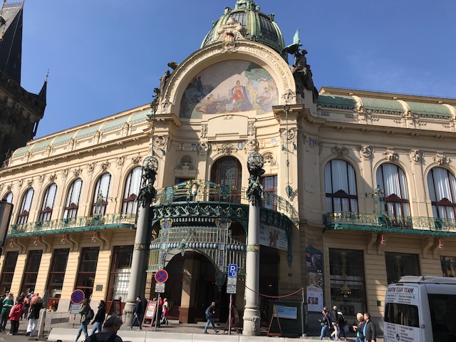 プラハ観光に共和国広場のすぐそばのイビス・プラハ・オールドタウンに宿泊したので、この市民会館がプラハ観光で初めて訪れた場所です。全体的に美しい建物ですが、特に建物正面上部の絵がとても良かったです。他の観光客も正面から写真を撮っていました。