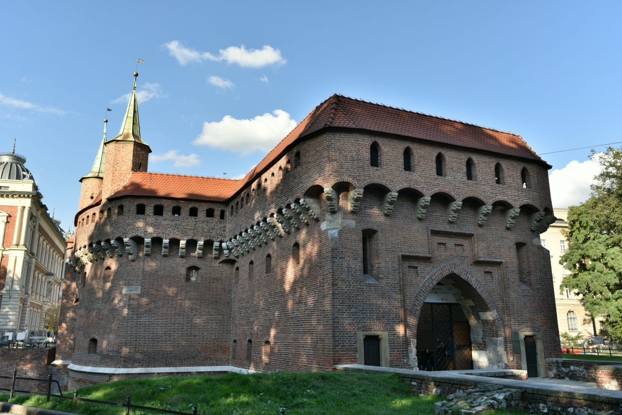 クラクフの鉄道駅、バスターミナルから旧市街に入るために歩いて行くとある防衛施設がバルバカン。