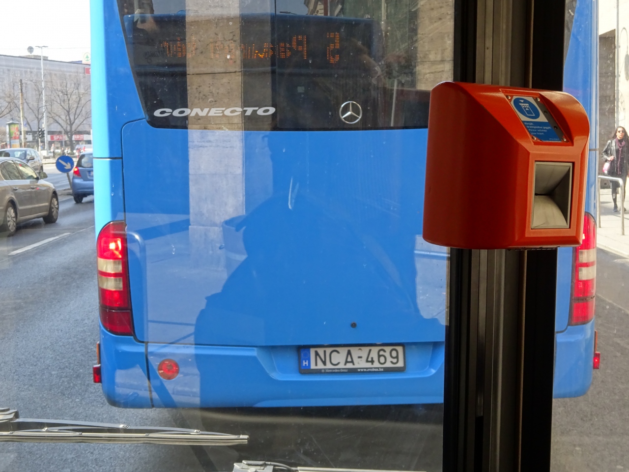 街なかを走る青いバスに乗って、ドナウ川を渡りました。バス停はたくさんありますが、バス停に切符売り場が必ずあるわけではないので、近くにあるトラムとか地下鉄の駅の券売機で切符を買ってからバス停に行きました。前のドアは乗る専用、降りるのは後ろのドアから、という注意がバス内に貼られてますが、あんまり守られていません。