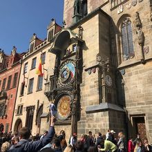 プラハの旧市街広場にあるメインの建物です。ここの天文時計が有名です。ちょうど毎00分にカラクリ時計が動くのですが、50分ぐらいにはすでにすごい人だかりが出来ていて、私もその中に参加しました。文字盤の上にある二つの小窓から聖人たちが順番に顔を見せてくれるだけのカラクリで、想像したよりも地味なものでした。