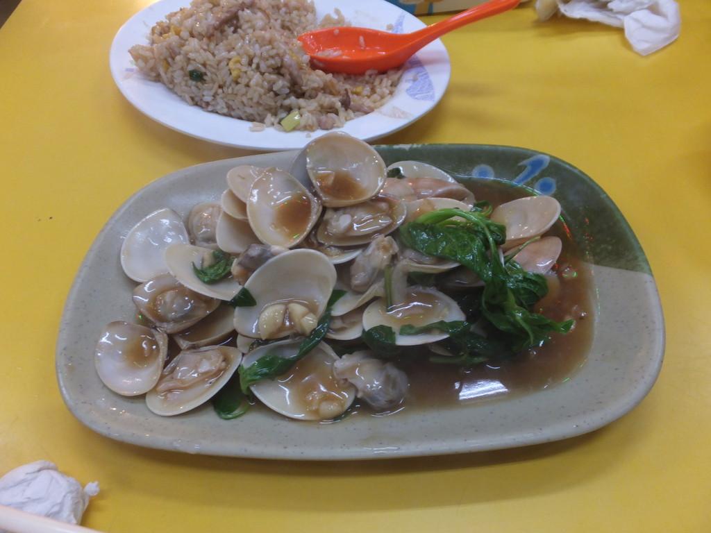 余りお腹が空いていなかったので、炒飯、アサリの炒め、野菜炒めを注文。