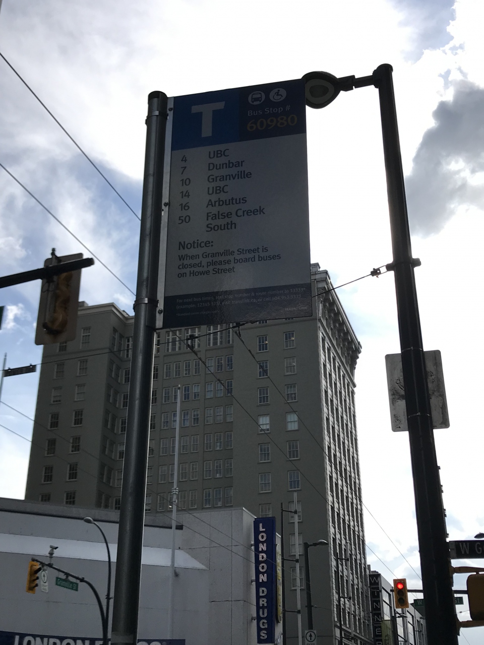 シーバスのターミナルから始まり、バンクーバーの中心部を南北に走る大きな通りです。通り沿いには、大きなショッピングセンターもあり、メインストリートでした。グランビル・アイランドへ向かう際は、バスでこの通りを真っ直ぐに南下しました。