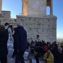 アテナ ニケ神殿はアクロポリスの前門右の大きな四角の石柱の建物です。