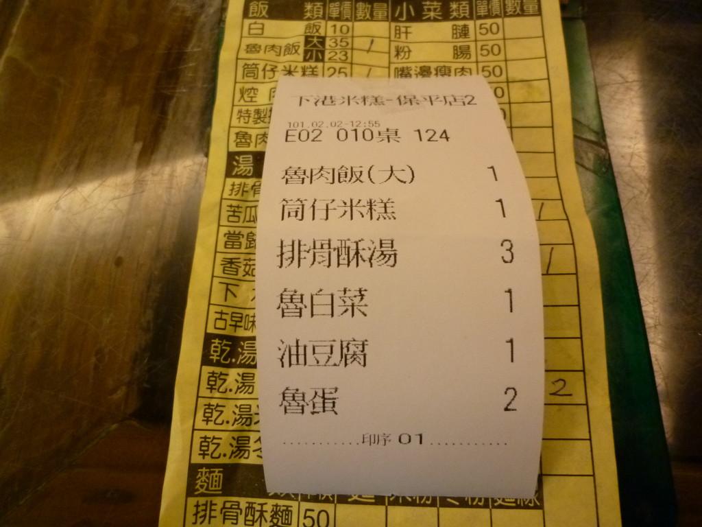 排骨酥湯、米糕、魯肉飯、魯白菜、油豆腐、魯蛋を注文、