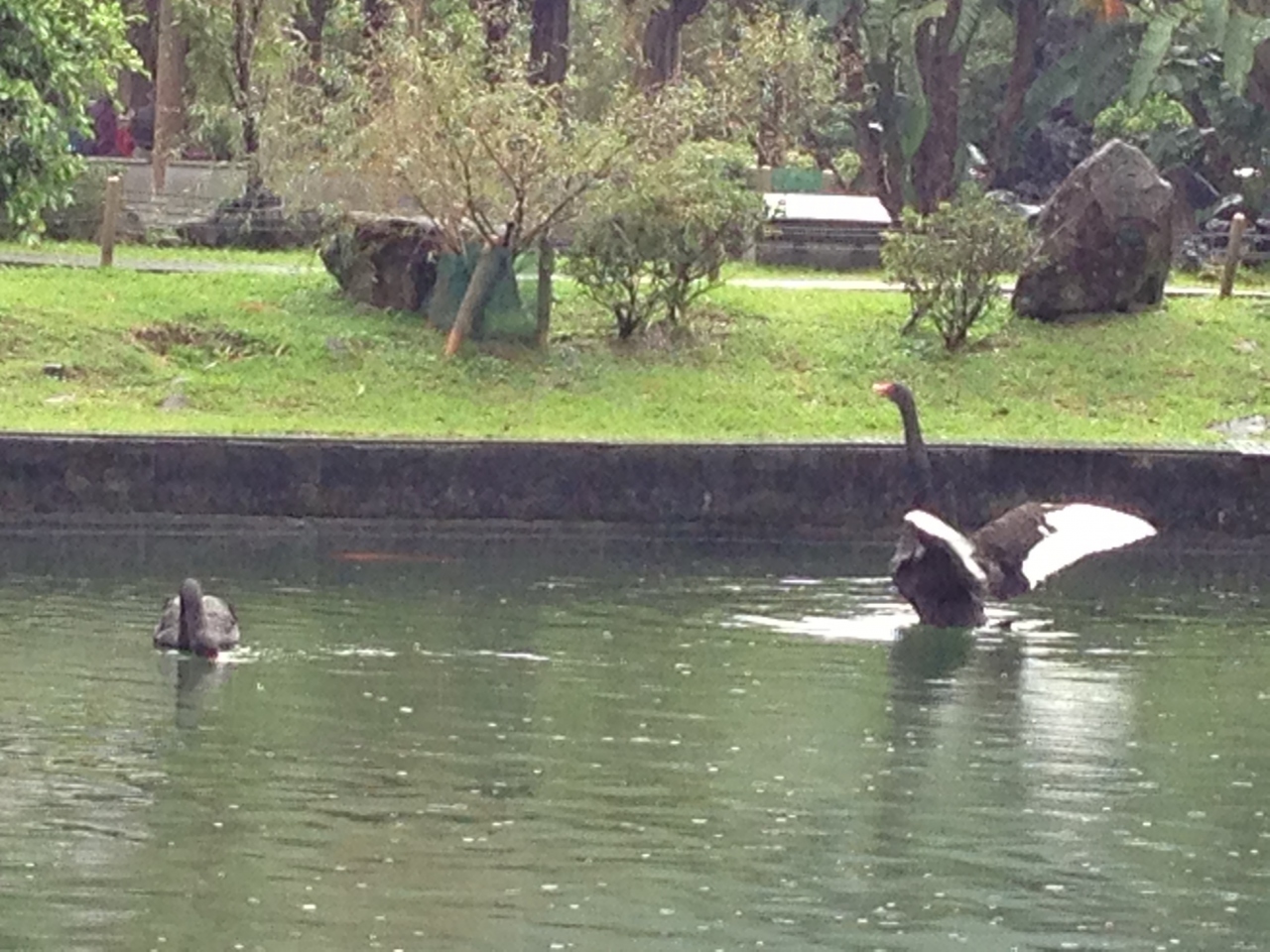 博物院の中に入る前にまず庭園の方に来てしまった。とりあえず見てみると、見事な中華庭園だった。日本でいうところの東屋も中華風で新鮮だった。東屋の中には中国語が書かれた屏風などがあって、異国文化を感じる。途中大きな池があって、黒鳥が水浴びをしていた。黒鳥って初めて見たかも。