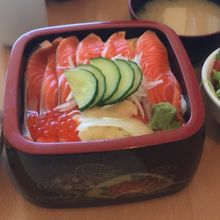 こちらはテカポ湖を回るツアーにはかなりの確率で立ち寄る事になっているレストランです。海外で生魚は抵抗がありましたが、日本で食べるサーモンと同じような丼でした。醤油と味噌汁が懐かしく感じました。日本食のメニューがたくさんあり日本酒もありました。お客さんも日本からのツアー客が大半でした。