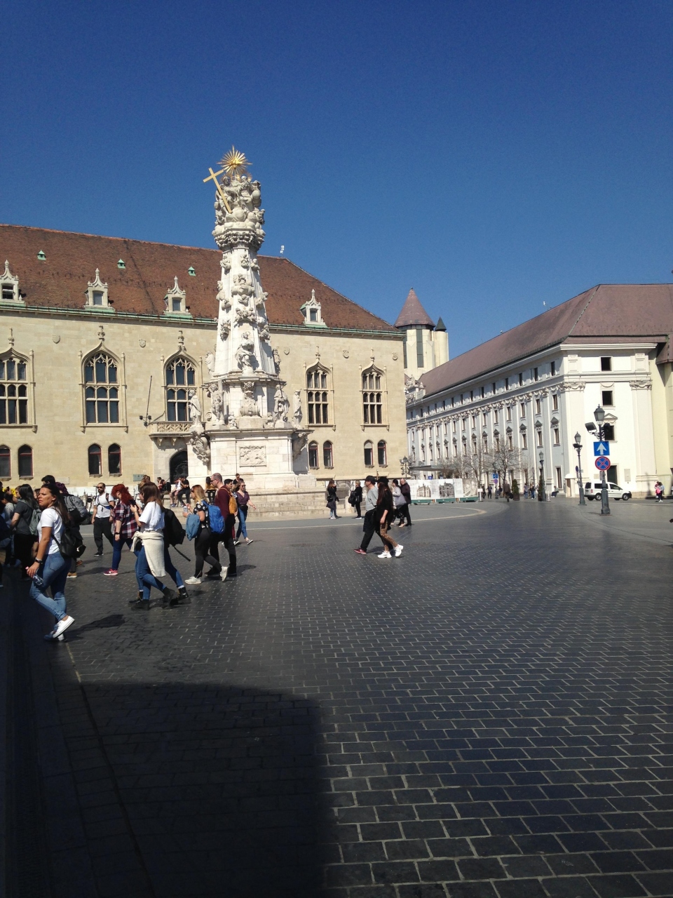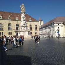 王宮からマーチャーシュ教会に行った時に教会の手前にあった小さい広場で中央に三位一体の像があります。この広場の横からペスト地区に行くバス16番のバス停があるので、夜景を見るときには便利でした。教会のチケット売り場もあります。