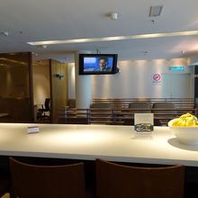 ラウンジ内は高級感に重きを置いたものではなくカジュアルな明るい雰囲気でした。食べ物も軽く食事にするには十分じゃないかな。