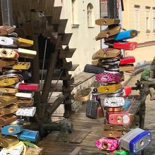 プラハ城の麓にあるジョンレノンの壁を訪れた後に、カレル橋の反対側にあるフランツ・カフカ博物館に行こうとして道に迷っていたら、このカンパ島の水車がありました。水路のような場所に小さな橋が架かっていますが、そこには南京錠がたくさん掛けられていました。何でしょうか?