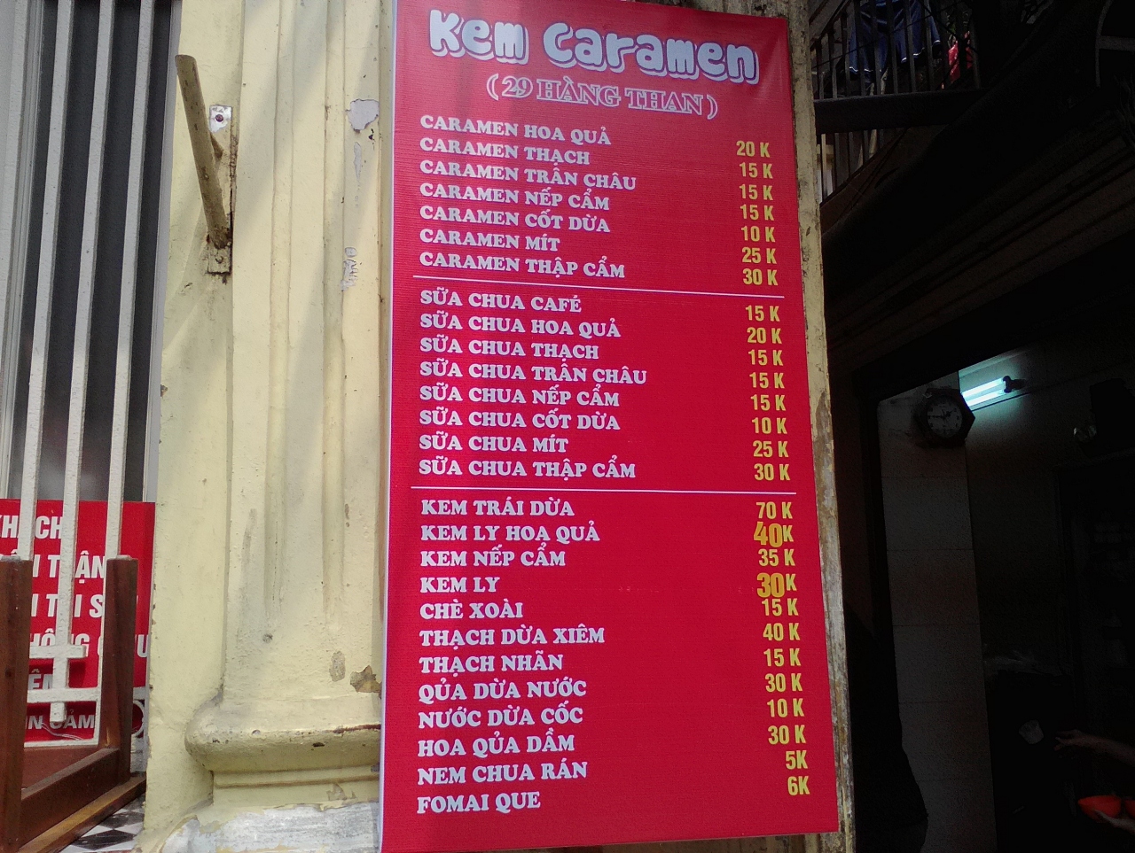 メニューには載っていませんがプリン単体でも食べられます。で、そのCaramen(プリン)をオーダー。1個7000ドン(約35円)です。