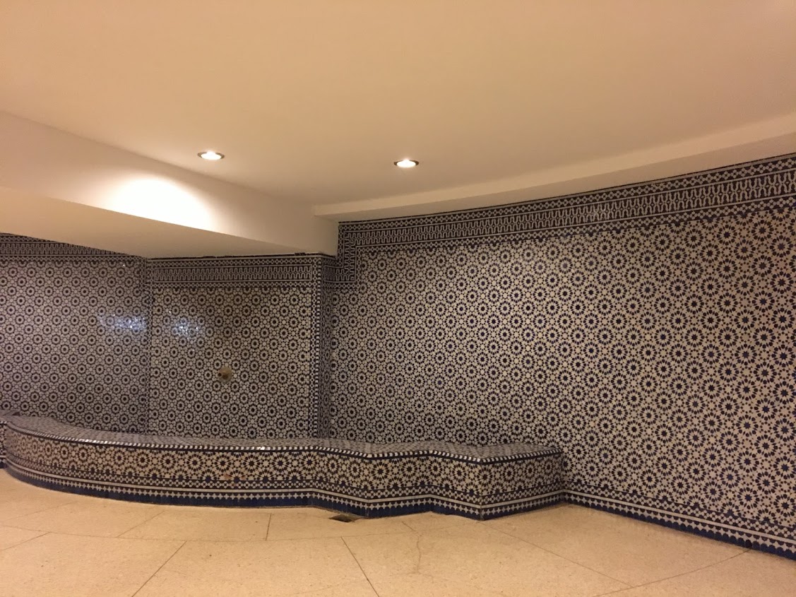 装飾とどれをとっても美しい、そして一番感心したのはトイレへと続くタイルの壁の美しさ、」モスクの礼拝堂には25000人敷地には8万人を一度に収容できるので