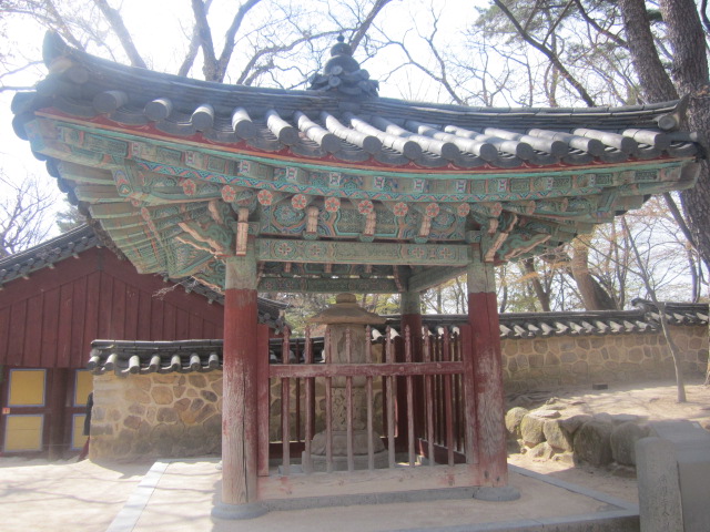 因みに、観光客視点からは、春ですと仏国寺境内では珍しく、桜とお堂とのコラボ風景が楽しめる所でもあります。また、すぐ横に小さな祠があって、こちらには高麗時代に遡るとされるこじんまりとしたお姿の舎利塔も安置されています(大韓民国宝物(国宝に次ぐランク)に指定されています)ので、こちらも是非お見逃しなく…。