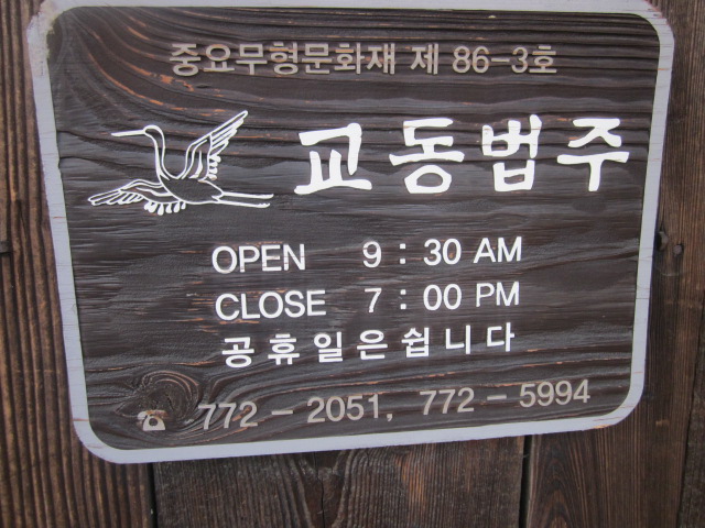 慶州郷校のある校洞エリアにある、伝統酒の製造元として知られています。このお酒は国家の無形文化財にも指定されているそうで、私が訪問した日曜日は休みでしたが、入口の軒構えからして由緒正しい風情が伝わってきて、とても静粛な気持ちになりました。尚ここは平日でも、諸事情にクローズすることもあるそうなので、買えればラッキー位の気持ちで訪問されるのが良いでしょう。