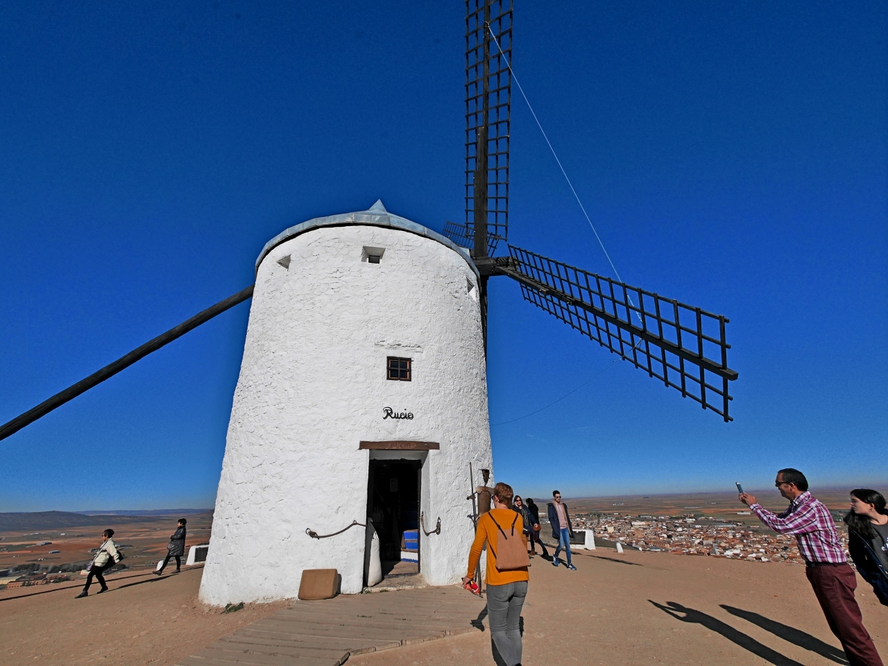 どうしてもみたかったのはドンキホーテのラマンチャの風車だ.彼が愛馬ロシナンテにまたがり巨人ブレアレオと間違えて,突進したのは明日行くCampo de Criptanaだが,このConsuegraの丘の上の12基の風車は,真ん中のConsuegra城(Medieval城)の南北に散らばり,すばらしい景観を作っている.眼下には,Consuegraの街と広がるラマンチャの大地 ため息が出るほど素晴らしい.最初の風車Boleroに観光案内所 風車のみの入場料2.5ユーロ 城と市立博物館の共通券5.5ユーロだった.10番目のRucioも中が見学できるのとおみやげ屋 風車の小さな置物と,スマホ立てを買ったがこのスマホ立て,評判が良かった.近くに来るなら街の雰囲気もいいのでおすすめ