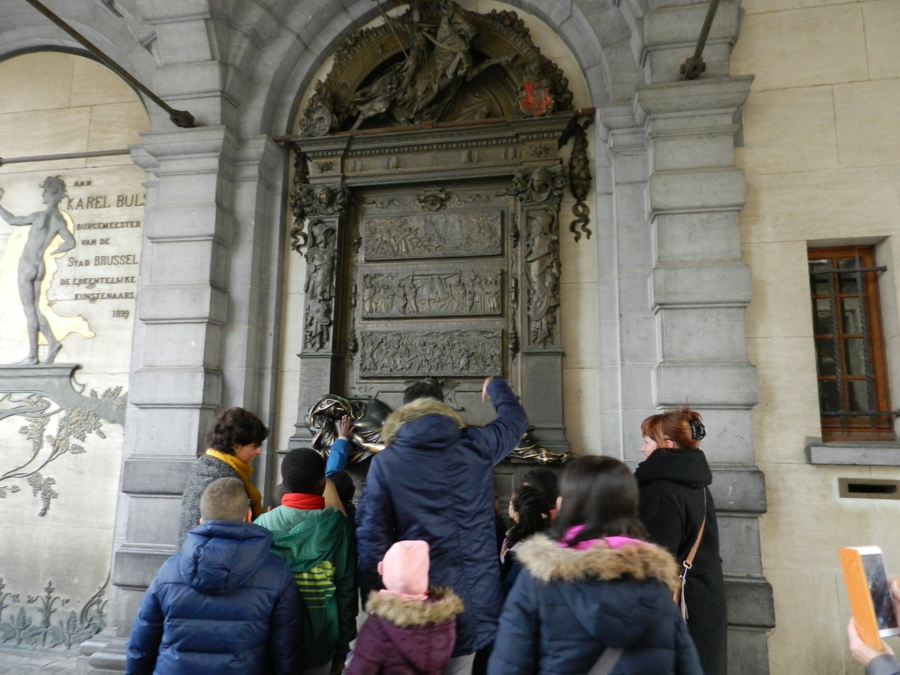 ブラッセルの観光名所”グランプラス”の市庁舎横の最も古い館の一つ”星の館”の壁に横たわる銅像。セルクラースは1356年にブラバン公が統治していたブラッセルの街をフランドル伯軍から守った英雄だそうです。銅像を撫でると幸せになれると伝わり撫でる人が多く並んでいます。誰も居なければ見逃しそうです。