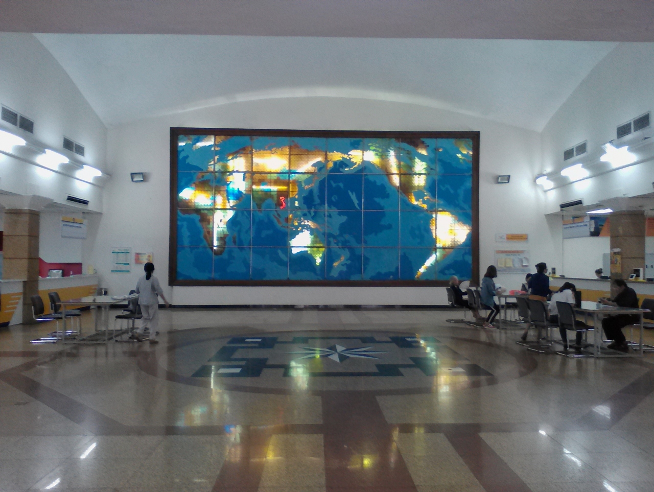 当然ですが日本へのエアメールも出せます。日本への絵ハガキの切手代は1万5000ドン。絵ハガキは郵便局内に売っていすが、郵便局北隣りのカフェスタンドにプロパガンダポスターデザインのおしゃれな絵ハガキ(1枚1万ドン)があります。郵便局の営業時間は7:00ー18:00、営業時間中なら窓口でスタンプを押してくれますが時間外なら郵便局前のポストに投函してもOK。13:50と18:30の1日2回回収されることになっています。