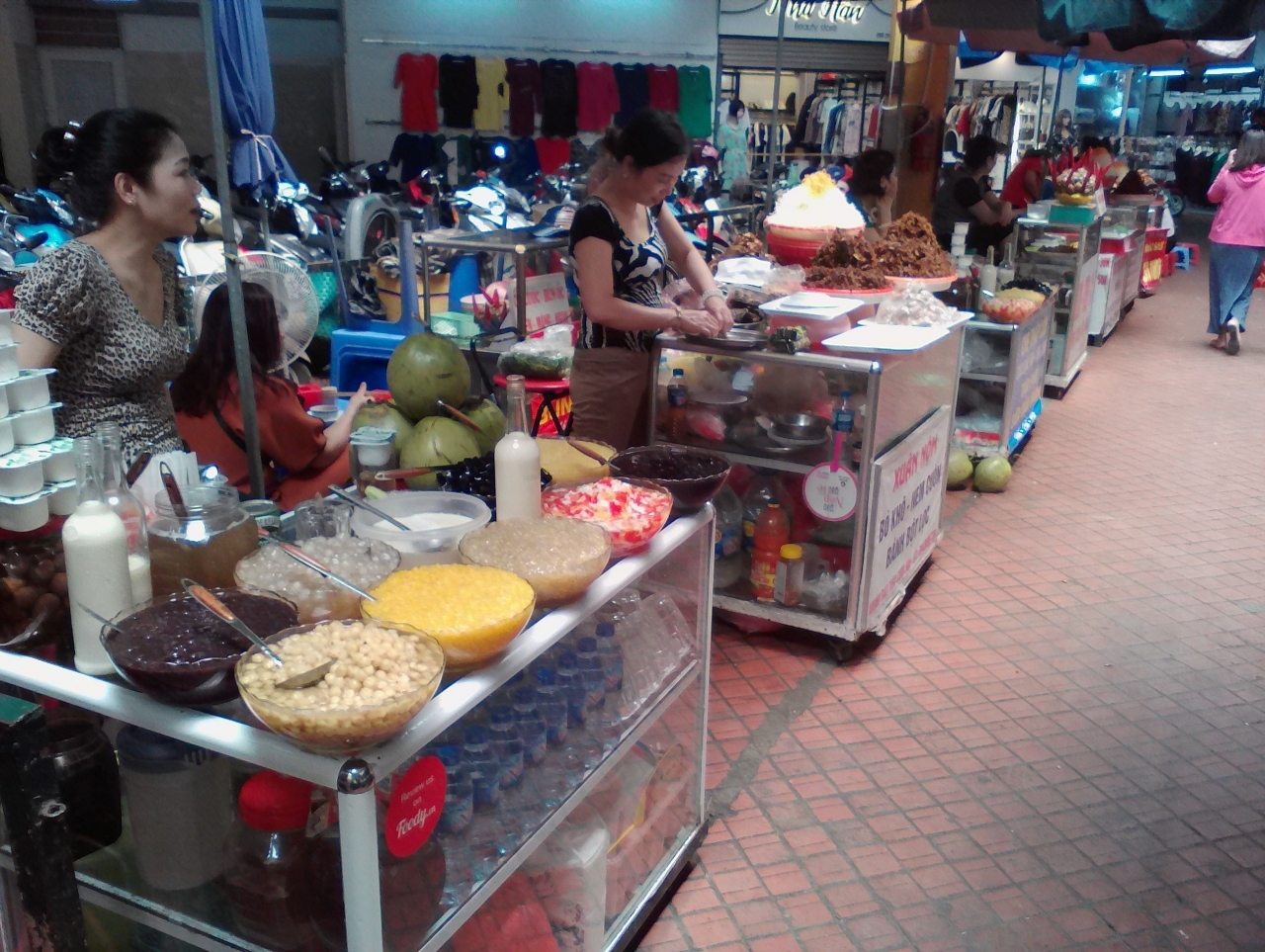 この市場の見どころは2つ。一つは1階中央の吹き抜け部分。天井の明かり取りのおかげでそこだけ天光が射しているよう。周辺にはフルーツ売り場やチェーなどが食べられる店が並んでいます。もう一つは3階、想像もできない静まり返った庭園?があります。まさに時が止まったよう。ぜひ見てみて下さい。