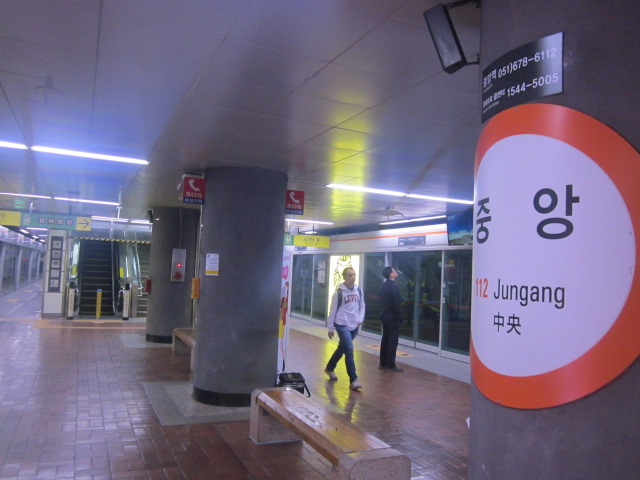 釜山市街地の真ん中にある駅の一つとして、観光客が立ち寄る機会も多い駅ですが、ここは元々中央洞(チュガンドン)駅と呼ばれていて、この方が韓国らしくて好きな駅名でしたが、2010年に単なる中央駅に改称されてしまったのはちょっと残念に思いますね。