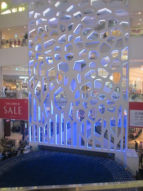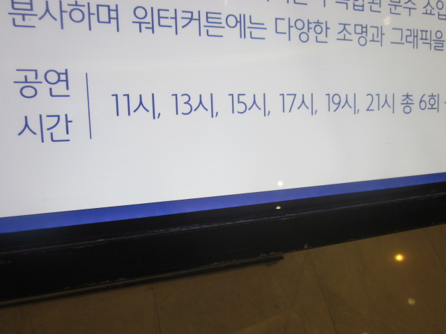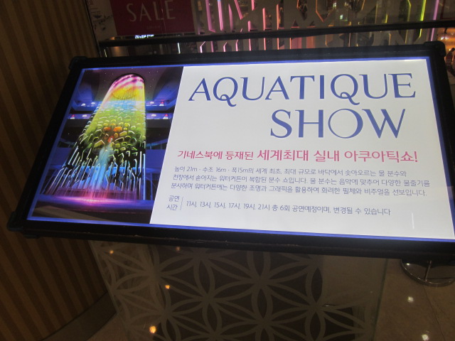 釜山の影島大橋傍にあるロッテ百貨店光復店には、スカイパークと共に店内の人気施設となっているのが1F中央の吹き抜け部分に設置された巨大噴水で開催されるこちらのショーです。
