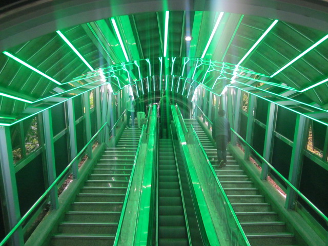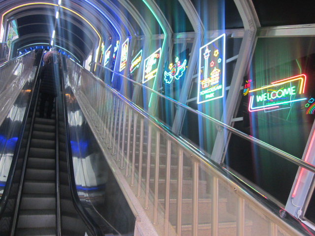 入口に続く、近未来的な風情のエスカレーターがステキ!