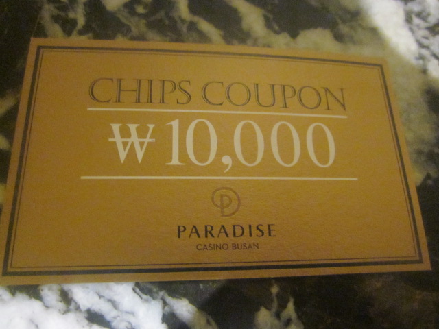 今回は、訪韓時に利用したBX(エアプサン)の搭乗半券提示で、ここの10000Wクーポンが頂けるとのことで、足を運んでみました。昼前の訪問でしたが、お客さんの入りは程々で、混み過ぎていても、空き過ぎていても、人目が気になってしまうカジノだけに、この位の客の入りが一番良いかな、という雰囲気でした。