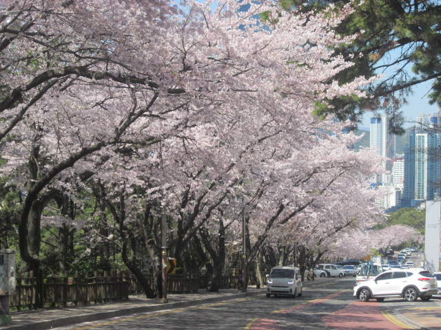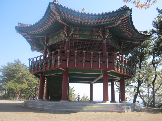 峠の少し手前(海雲台寄り)には、海月亭と呼ばれる楼閣も設置されていて、休憩スポットとしてお勧めですが、ここからの海の眺めは、樹木に遮られがちで、正直イマイチかなと思いましたが、本来ここは海の景色でなく、月夜の風情を楽しむための場所のようですので、敢えてそういう樹木交じりの場所に楼閣が設置されているのかな、という印象を受けました。