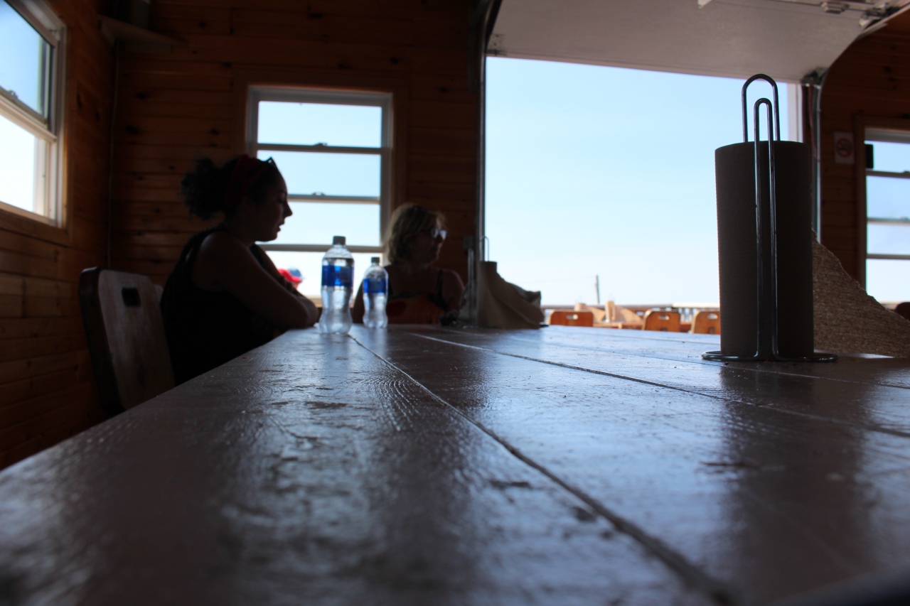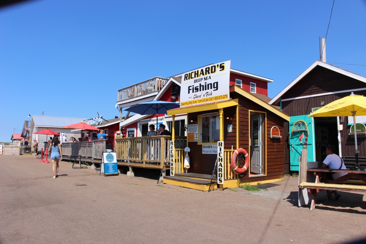場所が少しわかりにくいのですが、プリンスエドワード島国立公園に東の方から入って、小さな灯台の近くにある、橋を渡る手前の細い道を左折したところの小さな漁港のような場所です。