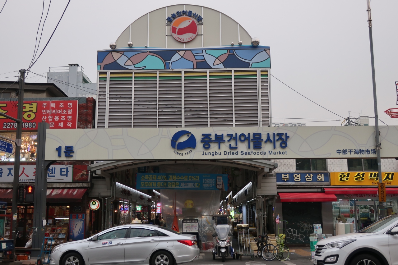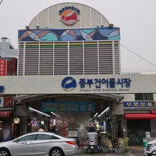 これほどまでに干物が一同に会しているのを見たことはなかったので非常に新鮮でした。干物と行っても日本の朝市にあるようなものではないくて完全に乾燥したカラッカラ状態のもの。とくに干し魚は韓国の人にとっては欠かせないもののようで干しタラがたくさんありました。お土産に買っていっても良いのかもしれませんが調理方法が解らなかったのでやめておきました。店の人はあまり日本語は通じない感じでした。