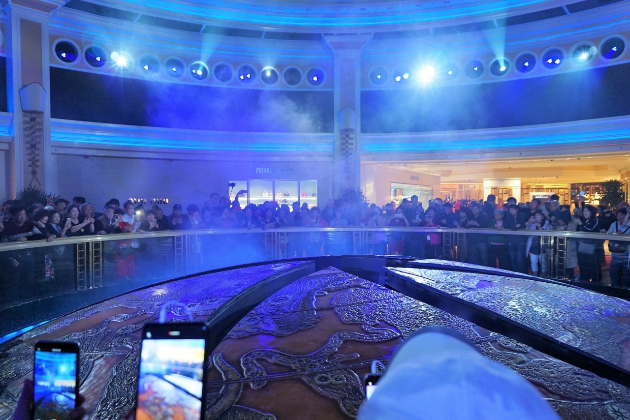 ウィン・マカオで行われる無料のショー。たった3分のショーとは思えないほど、見応えがあります。