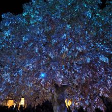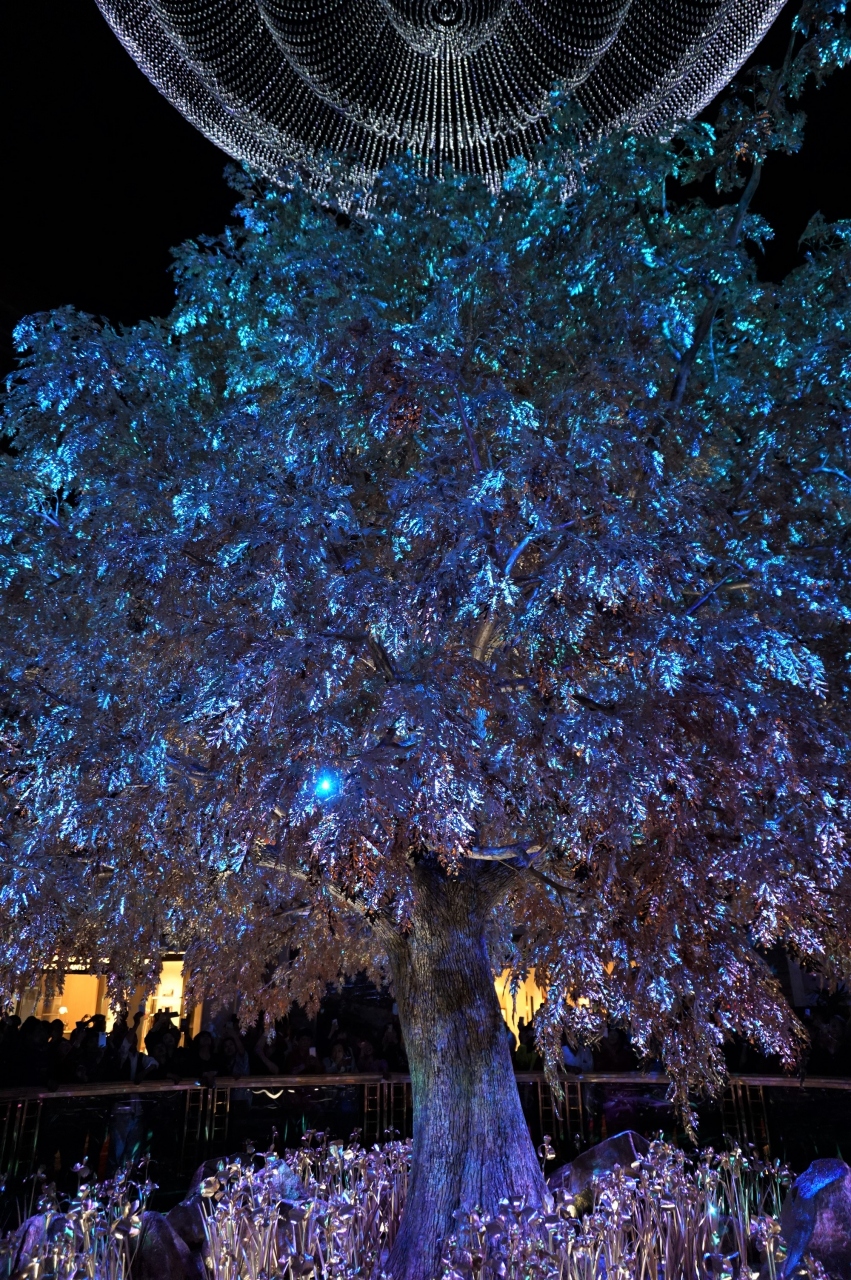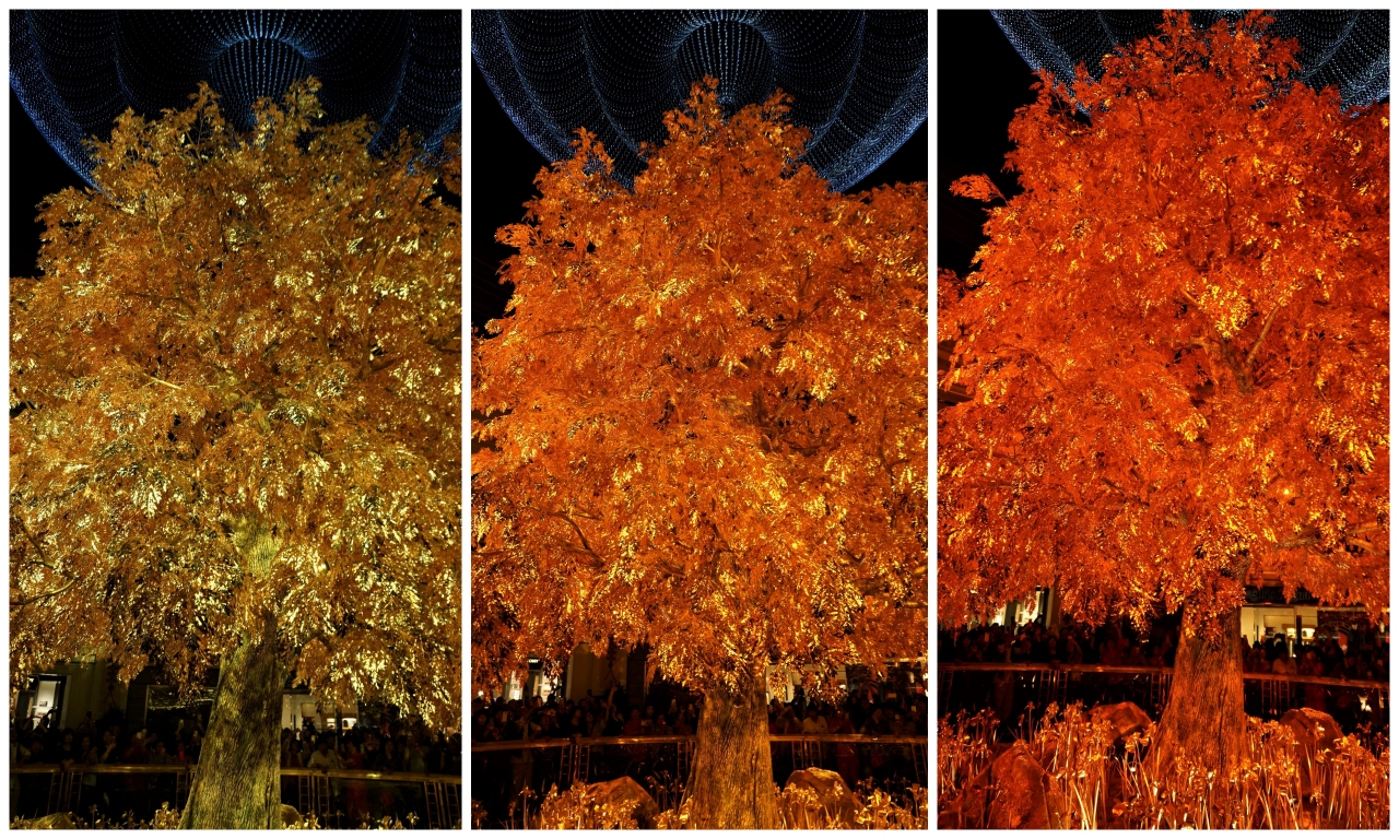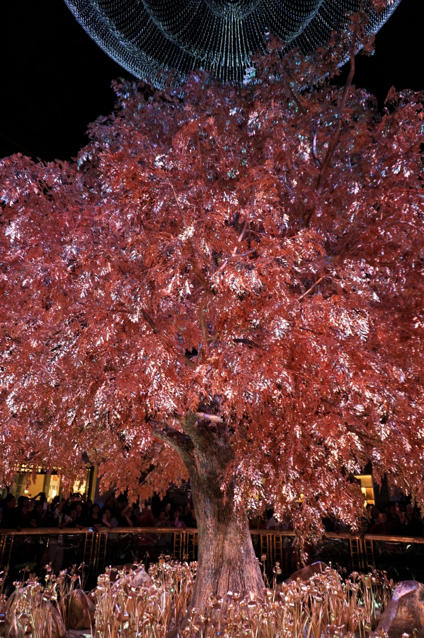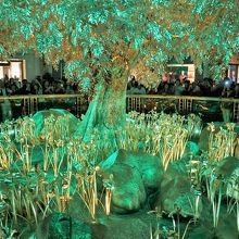 せり上がってきた金色の大きな木が色を変えていく様子に目を見張るショー
