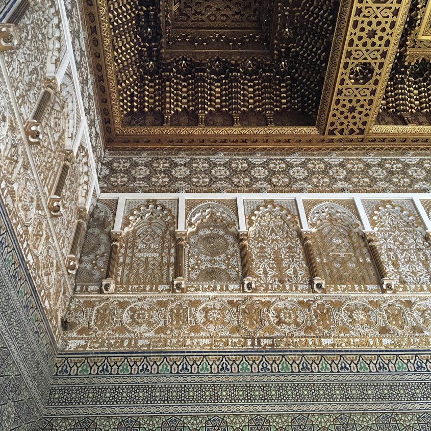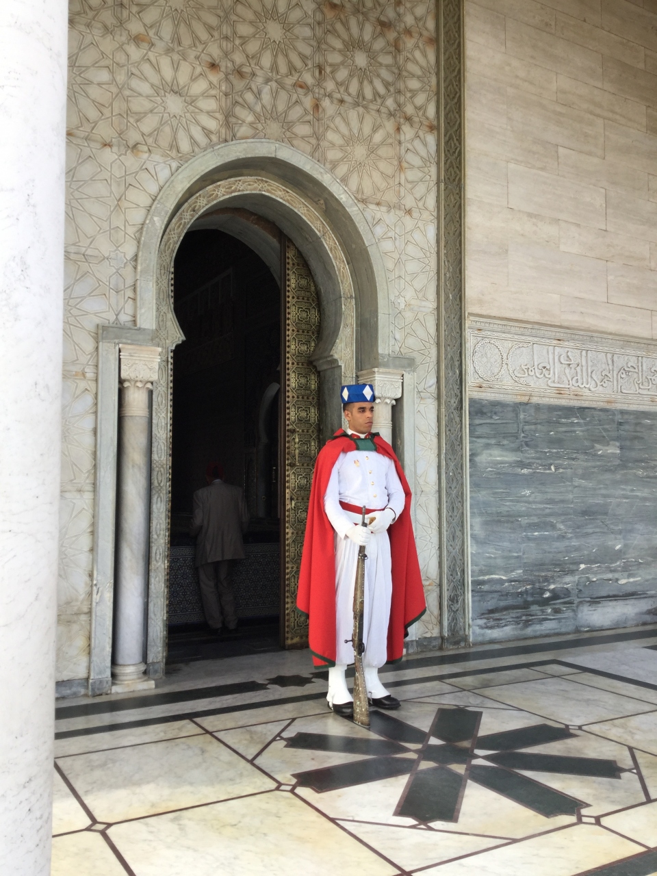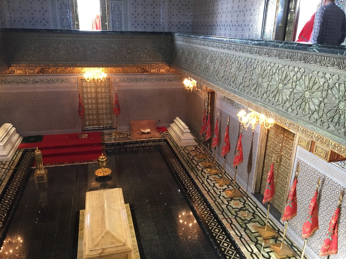 モロッコの首都ラバトにあるムハンマド5世の霊廟のムハンマド5世とはモロッコをフランスからの独立を勝ち取った国民的英雄です。この霊廟には彼の二人の息子も埋葬されているそうです。シンプルな外観からは想像できないよぷな内部の装飾はとても凝ったもので