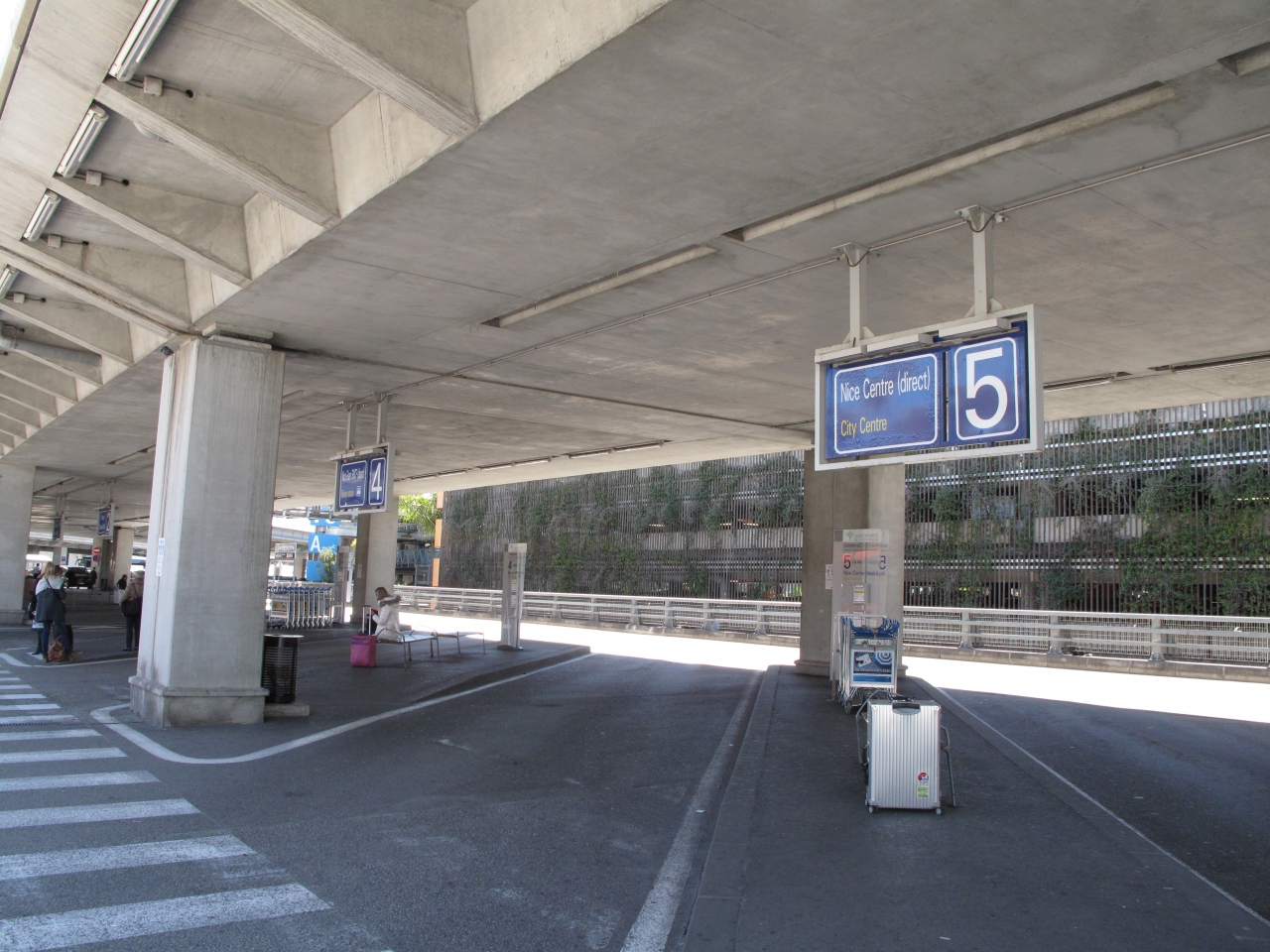 ニース市内に行くのはバス98。空港ターミナル2なら、出口左側にバスチケット売り場があります。1人6ユーロ、クレジットカードが使えます。