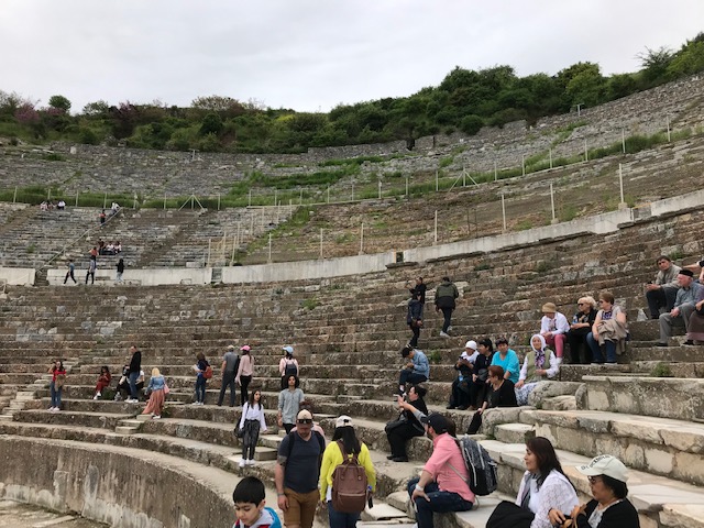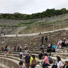 エフェス遺跡の中に入ってまっすぐ進んで行くと左手にこの大劇場が見えてきます。エフェス遺跡の最初の見どころだと思います。かなり大きな場所で2から3万人ぐらいが収容できるそうです。この劇場が作られたクレオパトラが生きていた頃の2万人というのは、すごい人数だと思います。よくこんなものを作ったものだと感心しました。