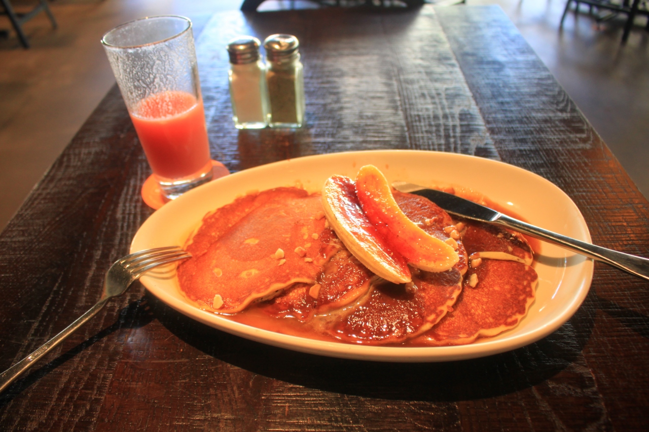 こちらで朝に、キャラメルバナナパンケーキとグァバジュースをいただきました。時間が早かったこともあってか、ほとんどお客はおらずゆったり過ごせました。