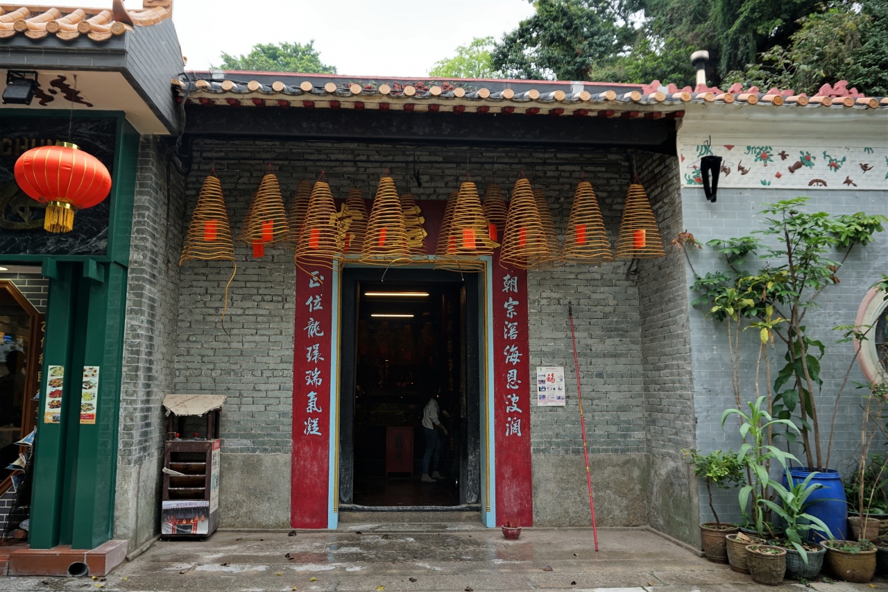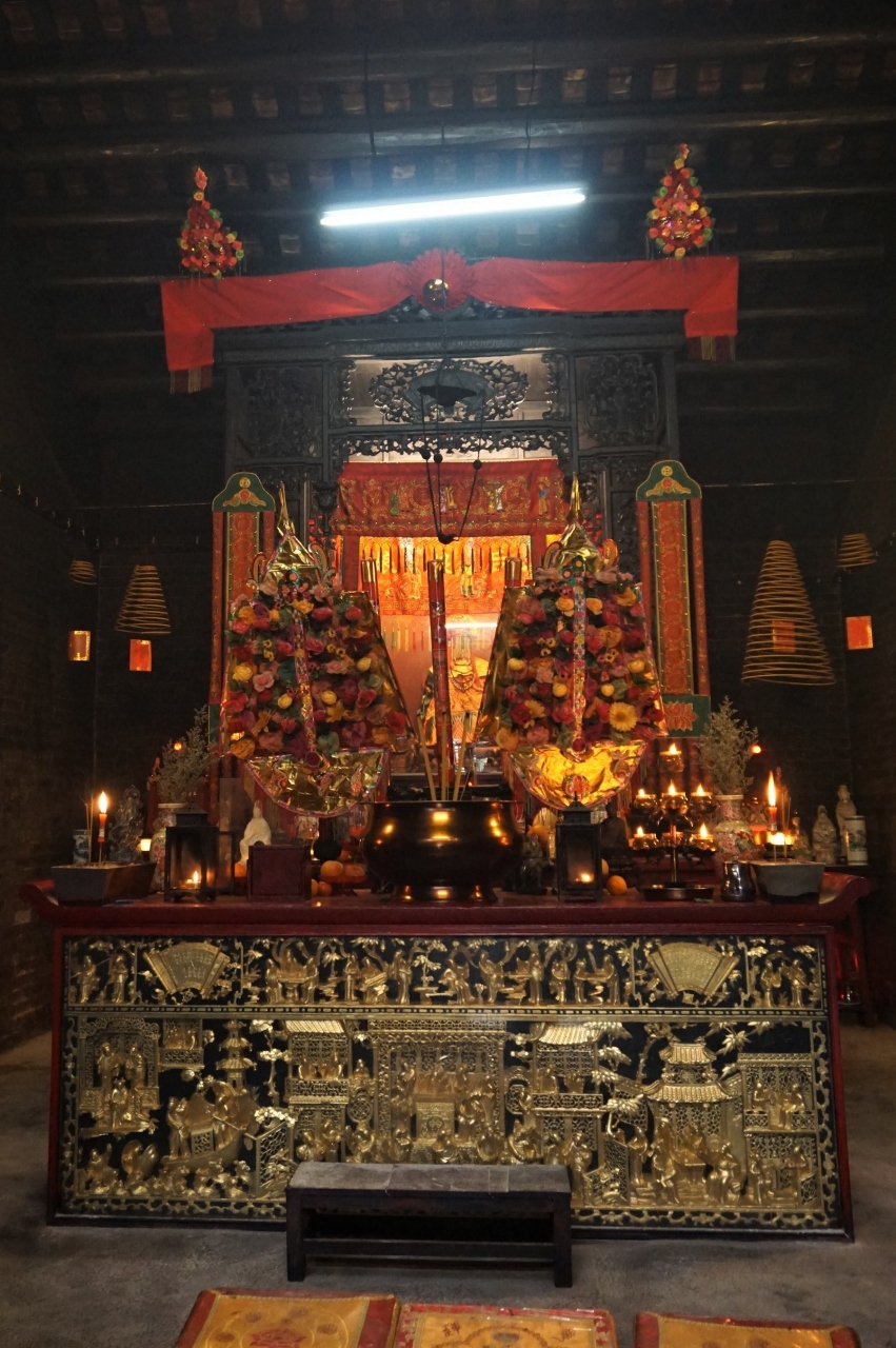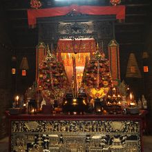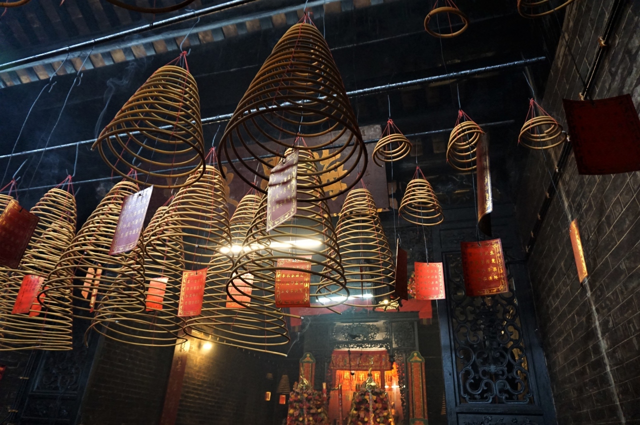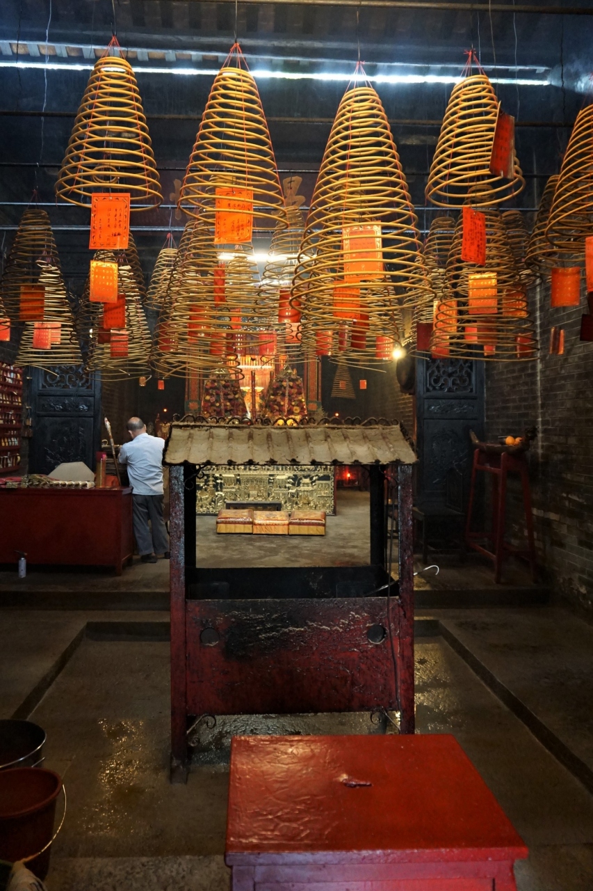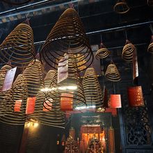 小さな廟にたくさんの線香が下がっているので、中は煙でむせかえるよう。1m以上ある大きな線香が下がる様子は、一見の価値アリ。